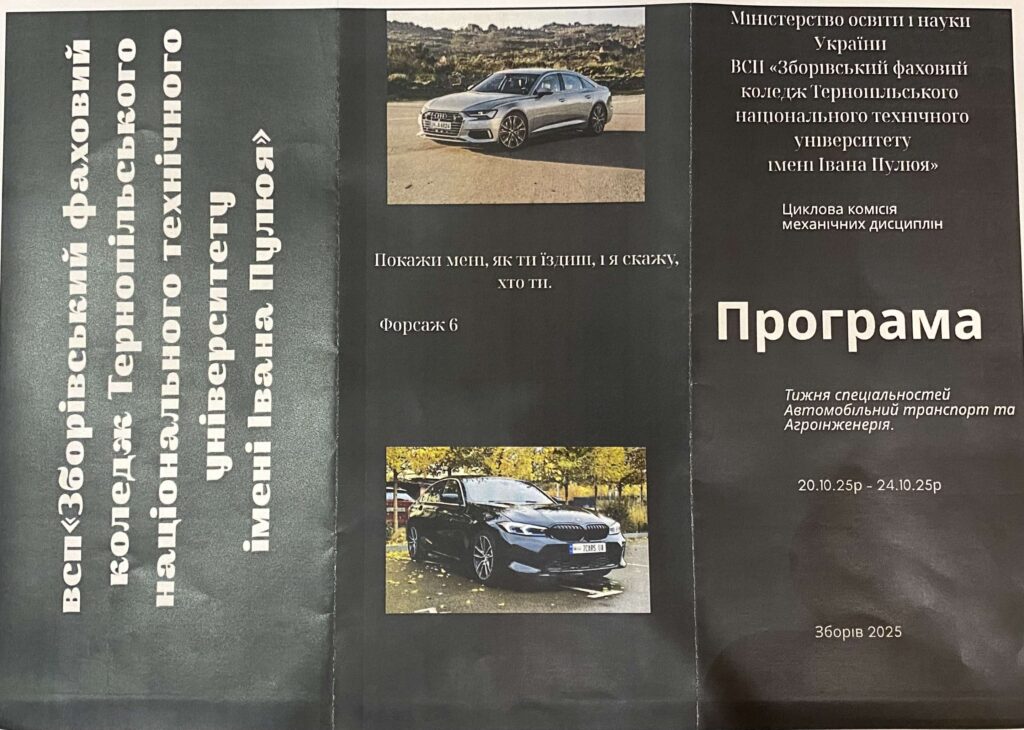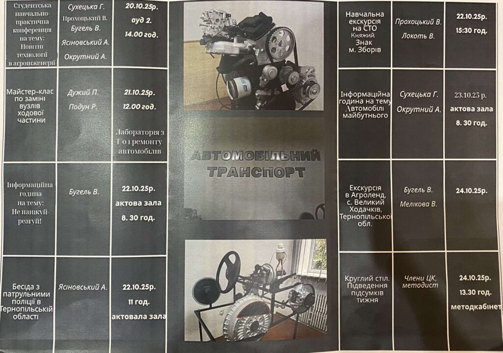 З 20 по 24 жовтня у ВСП «ЗФК ТНТУ» проходив тиждень спеціальності Автомобільний транспорт та Агроїнженерія. В рамках тижня викладачами ЦК механічних дисциплін підготовлено і проведено різноманітні навчально-пізнавальні заходи.